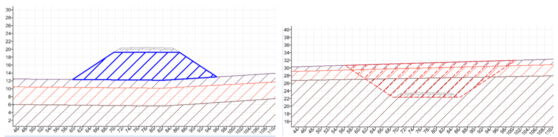 Эти задачи можно решить с помощью PLAXIS 2D. Для этого импортируем сечения, созданные в OpenRoads Designer, и назначаем материалы слоев грунта (рис. 8).
