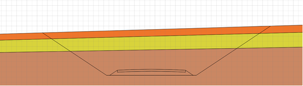 Рассмотрим пример геотехнических расчетов для выемки. При импорте поперечного сечения в режиме Structures появляются полигоны, которые определяют слои грунта и выемку (рис. 4).
