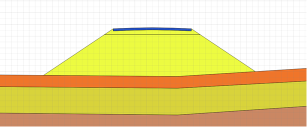 Рис. 8. Импорт поперечного сечения дорожной насыпи и грунтового основания в программу PLAXIS 2D и назначение материалов каждому слою