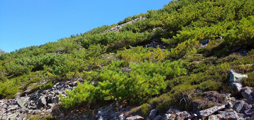 В подгольцовом поясе (рис. 4) характерными местообитаниями являются крупноглыбовые курумы склоновых кедровых стлаников и кашкарников с участием ольховника, а также фрагментарные участки лесной растительности, представленные лиственничниками кедровостланиковыми с участием ели и пихты в сочетании с крупноглыбовыми курумами. Следует отметить, что в августе 2022 года был отмечен высокий урожай шишек кедрового стланика, а в 2018 году их урожая не было.