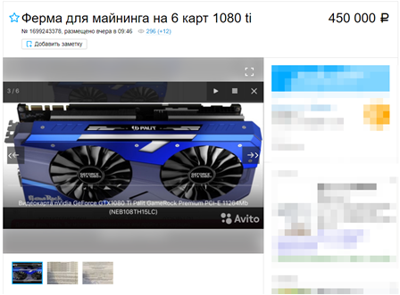 Рис. 1. Стоимость б/у сервера для майнинга, оснащенного популярными видео картами