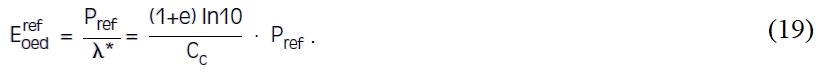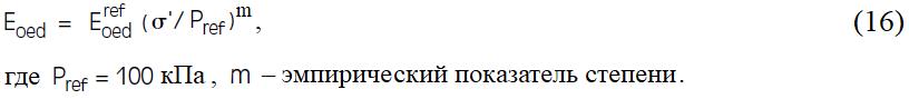 Вместо вышеуказанного безразмерного коэффициента в модели HS в качестве входного параметра используется Еoedref, то есть одометрический модуль деформации, соответствующий эталонному всестороннему давлению в условиях естественного залегания Pref σ = 100 кПа.