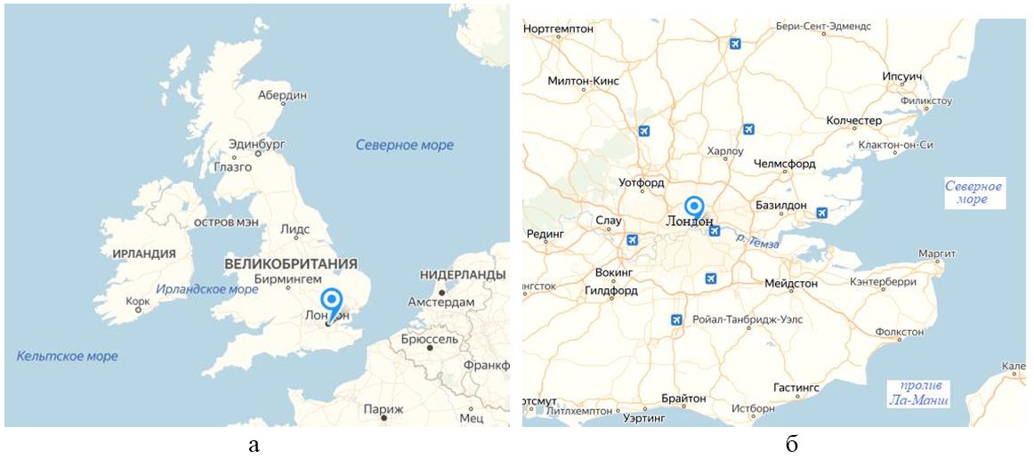 Рис. 1. Географическое положение г. Лондона и р. Темзы [13]