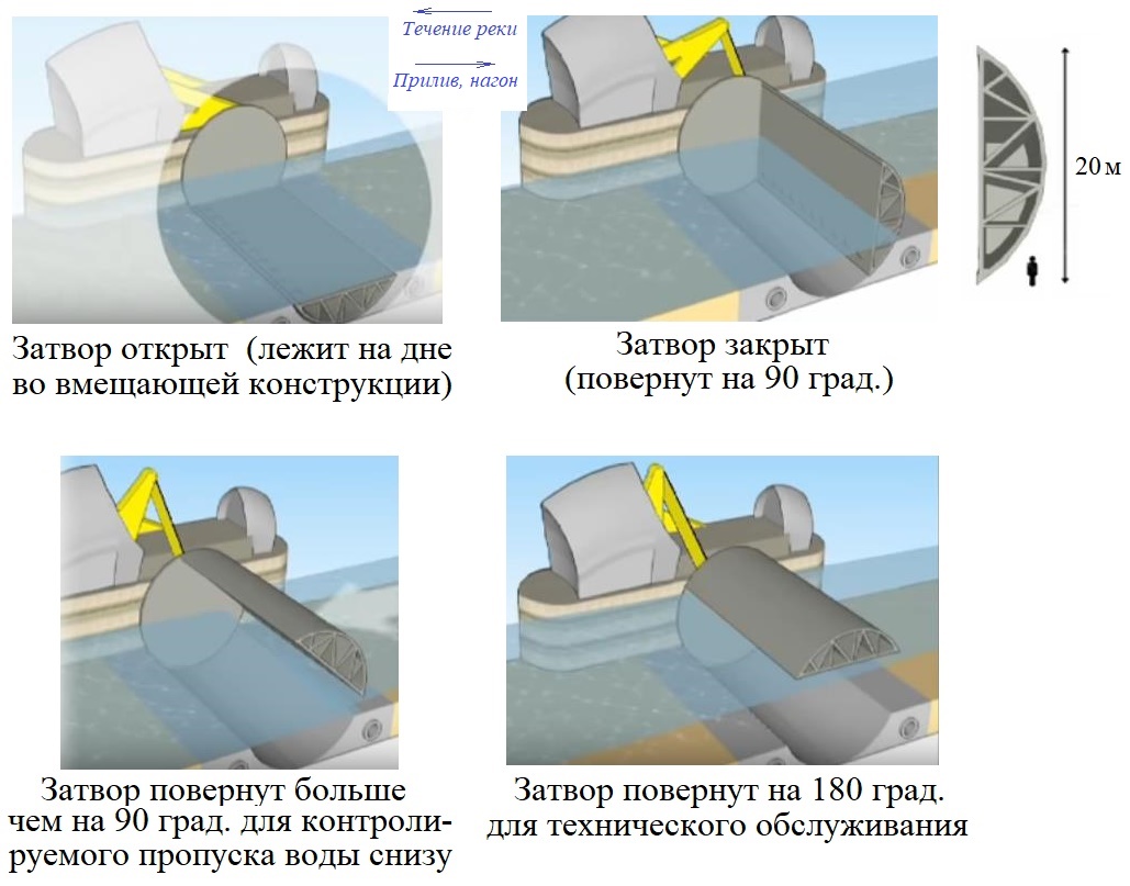 Рис. 7. Схема работы одного из затворов Барьера Темзы [11]