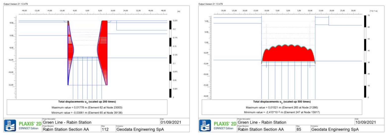 В статье представлены основные аспекты, касающиеся двух станций метро, входящих в этот проект, в качестве конкретных примеров, с акцентом на двухмерный численный анализ, выполненный с помощью программного обеспечения PLAXIS 2D, основанного на методе конечных элементов.
