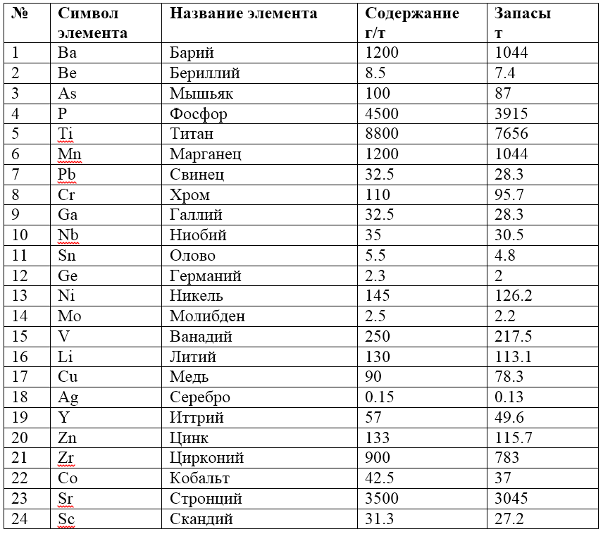 Таблица. Содержание химических элементов в Приозерском золошлаковом отвале