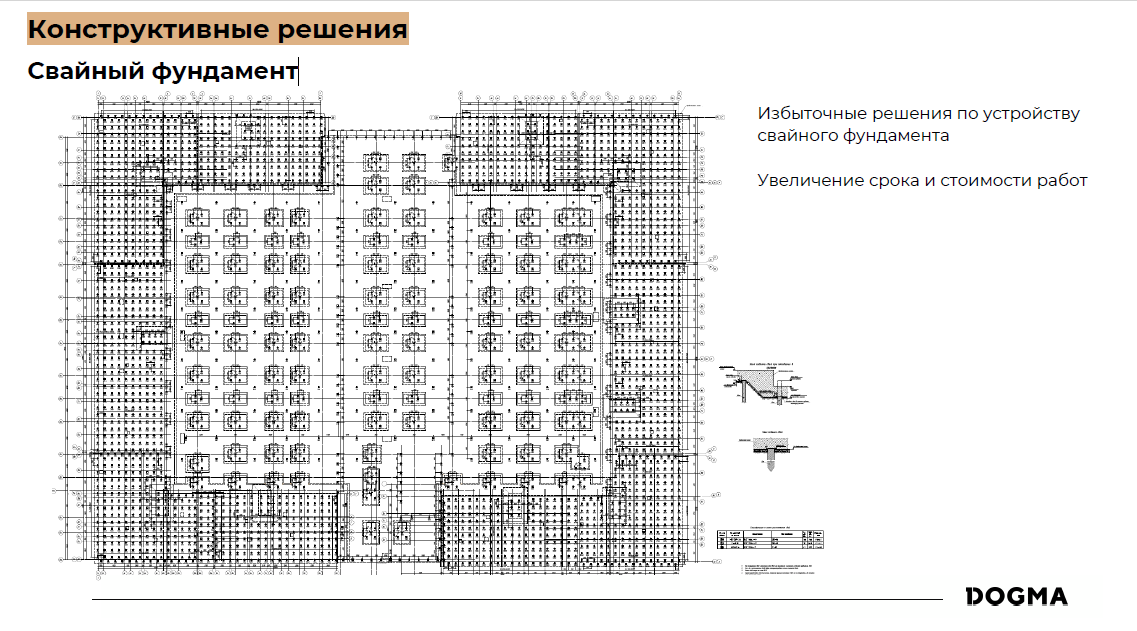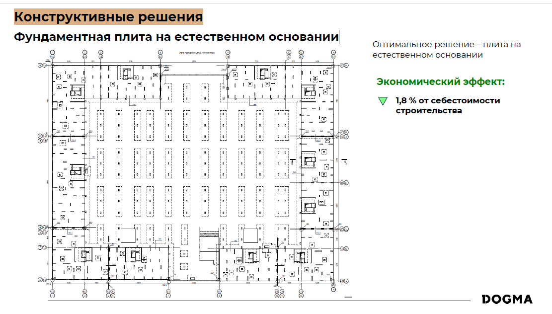«У нас был опыт, когда мы спроектировали фундаментную плиту на естественном основании. Экономический эффект составил 1,8%, что сопоставимо со стоимостью всей внутренней электрики или всего водопровода с канализацией. Избыточные решения по устройству свайного фундамента, наоборот, привели бы к увеличению срока и стоимости работ», — привел пример Эдгар Каспарян.