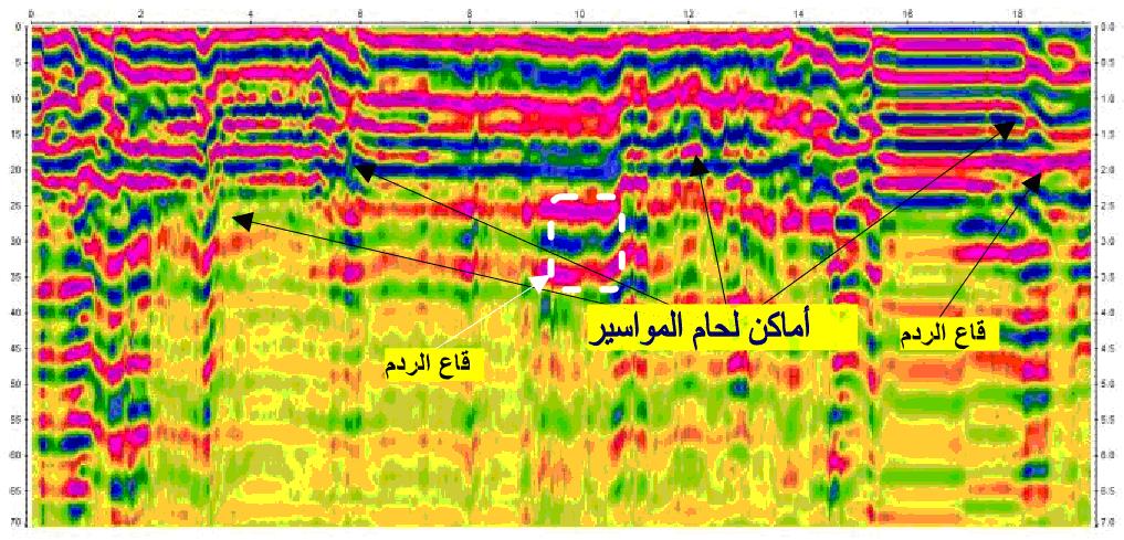 При участии автора доклада [2] c помощью георадара было исследовано состояние двух водопропускных систем, которые позволяют воде двух веток крупной дренажной канавы Эдко протекать под каналом Эль-Махмудия, а также под двумя дорогами, идущими вдоль этого канала по обеим его сторонам (рис. 2). Однако Атия [2] описывает результаты обследования только одной водопропускной системы, более новой, которая расположена севернее (см. рис. 2). Изучалось также и состояние покрывающих и окружающих ее грунтов и техногенных слоев.