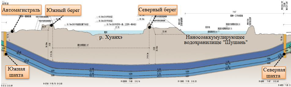 Река Хуанхэ, которую в Китае называют «рекой-матушкой», характеризуется большим количеством наносов, приносимых течением сверху, что приводит к постоянному повышению речного дна и к соответствующему повышению уровня воды ниже по течению, то есть это как бы сама себя поднимающая река. Поэтому проектирование строительства тоннеля через Хуанхэ на автодороге Цзинань – Хуанган с использованием ТПМК сверхбольшого диаметра сталкивается с проблемой больших переменных нагрузок.