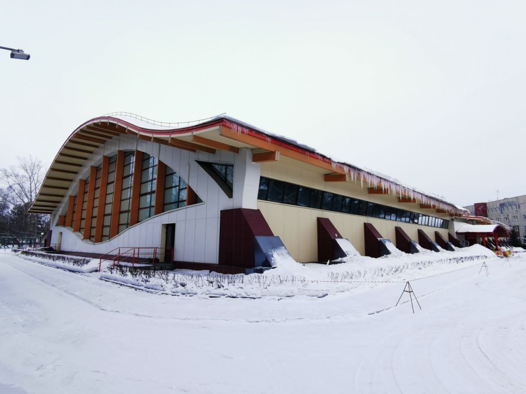 Здание центра, введенное в эксплуатацию в 2010 году, имеет размеры 42х90м и вмещает четыре корта. Проект каркаса покрытия из деревянных арочных конструкций разрабатывался сотрудниками ЦНИИСК им. В.А. Кучеренко. Обследование выполнялось с применением квадрокоптера, что позволило значительно сократить сроки выполнения работ и отказаться от использования подъемных механизмов для осмотра узловых соединений конструкций.