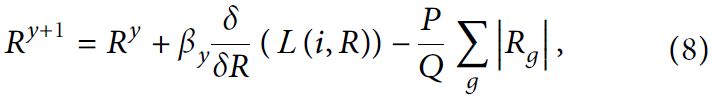где Q – размер батча; P – метапараметр, регулирующий уровень защиты модели от переобучения (определяющий степень регуляризации модели); R – счетчик итераций; βy – скорость обучения; Rg – весовой коэффициент (вес) параметра; L(i,R) – условная логарифмическая правдоподобность для i-го обучающего наблюдения (примера, объекта выборки).