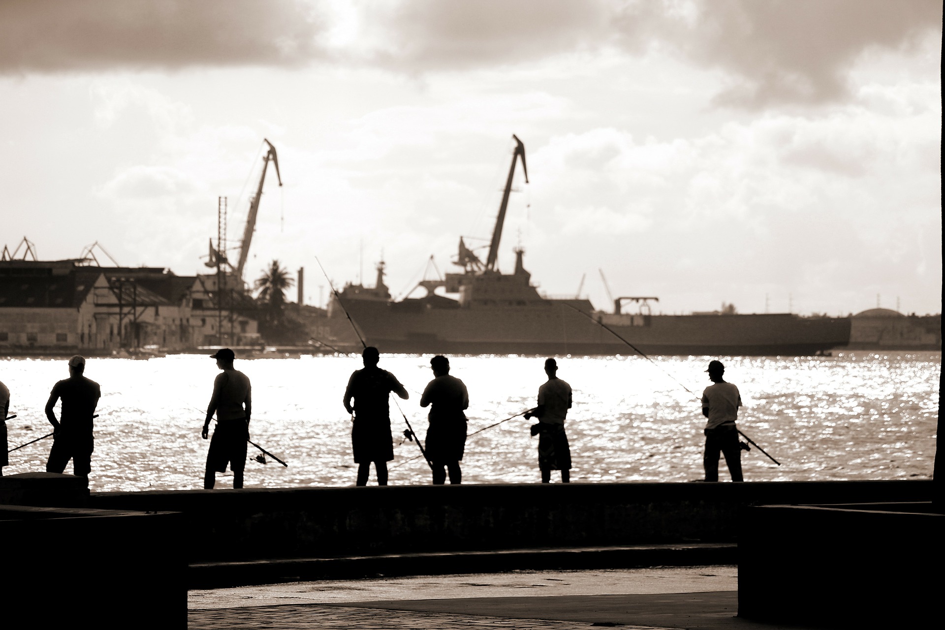 12 мая всей группой совершили поездку на интересный пляж Хибакоа, между Гаваной и Матансасом. Необычность его – в обилии кораллов вблизи от берега. Море в этот день было спокойным. Пляж с коралловым песком, входить в море можно босиком, не опасаясь. Заходишь в море по пояс, а дальше надо плыть: появляются ветвистые кораллы, жёстко прикреплённые к известняковому дну. Глубина метра полтора, под тобой твёрдые разлапистые, как рога лося и оленя, кораллы, между которыми много мягких кораллов в виде листьев, веток или трубок, в норах и трещинах дна снуют рыбки – ярко-синие или сине-оранжевые, почти флюоресцентные. Метрах в 50 от берега крутой уступ до глубины 6–8 м, с обратным уклоном. Видимо, раньше это были волноприбойные ниши, опущенные на 5–6 м. В трещинах и пещерах появляются и исчезают крупные, в несколько килограммов, рыбы. Вдруг из расщелины появляется и быстро исчезает крупная зелёная морда мурены. Замечаю стайку кальмаров: похожие на рыбок в юбочках, с «глазом» в нижней половине тела. Плывут кильватерной колонной, держась наискось в воде. Пытаюсь вклиниться в эту колонну – мгновенно куда-то исчезают.
