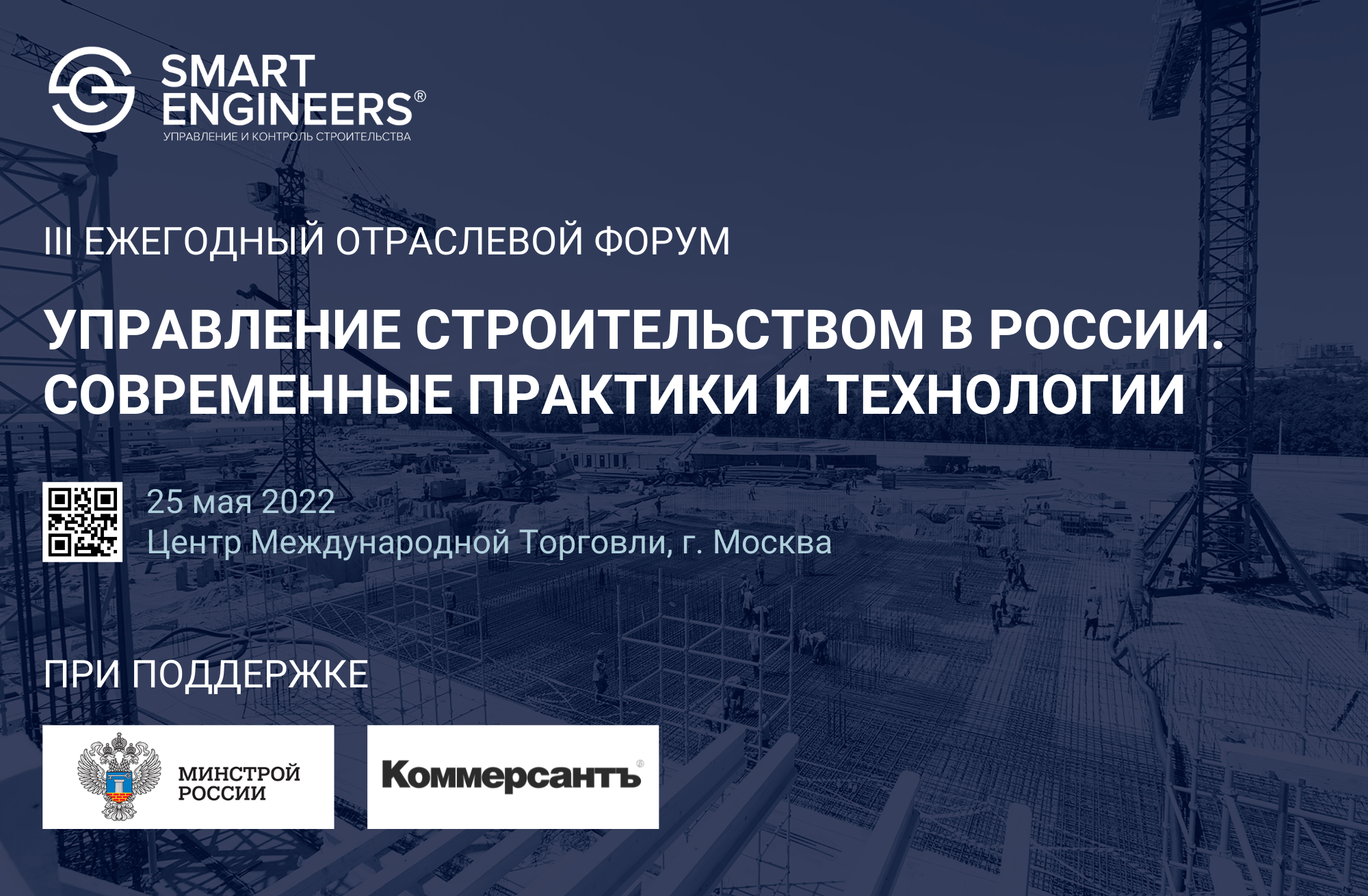 Москва. 19 мая. СМАРТ ИНЖИНИРС – 25 мая в Москве, в Центре Международной Торговли, состоится III Ежегодный отраслевой форум «Управление строительством в России. Современные практики и технологии». Форум станет площадкой для общения представителей деловых кругов и обсуждения вызовов, с которыми сегодня столкнулись инвесторы, девелоперы, проектно-строительные и инжиниринговые компании, и обмена лучшими практиками и компетенциями при реализации инвестиционно-строительных проектов в условиях меняющейся реальности. Организатором мероприятия выступает ГК «СМАРТ ИНЖИНИРС» при поддержке Минстроя России. Генеральный информационный партнер Форума – ИД «Коммерсантъ».