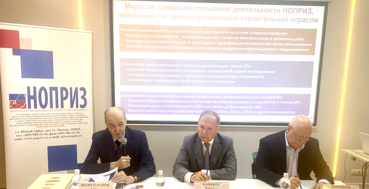 Меры, предлагаемые НОПРИЗ в части развития саморегулирования, Анвар Шамузафаров разделил на три блока. Это развитие рынка проектно-изыскательской деятельности на основе совершенствования методов ценообразования, стимулирующих рост качества изыскательских и проектных работ; контрактной системы с опорой на учет опыта и квалификации исполнителей путем рейтингования и системы технического регулирования, типизации, внедрения информационного моделирования. Второй блок — повышение профессионального уровня и квалификации членов СРО. Третий блок касается дальнейшего развития института саморегулирования и профессионального сообщества путем повышения роли и ответственности СРО и их членов за безопасность ОКС, а также развития роли и персональной ответственности ГИПов, ГАПов, ГИСов и других специалистов.