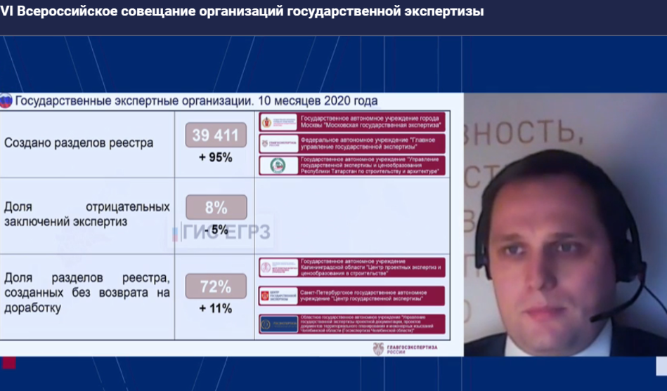 Также начальник Управления сопровождения проектов Главгосэкспертизы России Сергей Суэтин рассказал о том, как в 2020 году менялся один из главных информационных ресурсов института строительной экспертизы – Единый государственный реестр заключений. «Была запущена доработанная версия ГИС ЕГРЗ и введены дополнительные обязательные требования к качеству размещаемой информации. Теперь в документации, размещаемой в реестре, указываются сведения о направлении деятельности экспертов, реквизиты юридических и физических лиц, сведений об источнике финансирования, сведений о субъекте РФ, на территории которого планируется строительство», - заявил Сергей Суэтин.