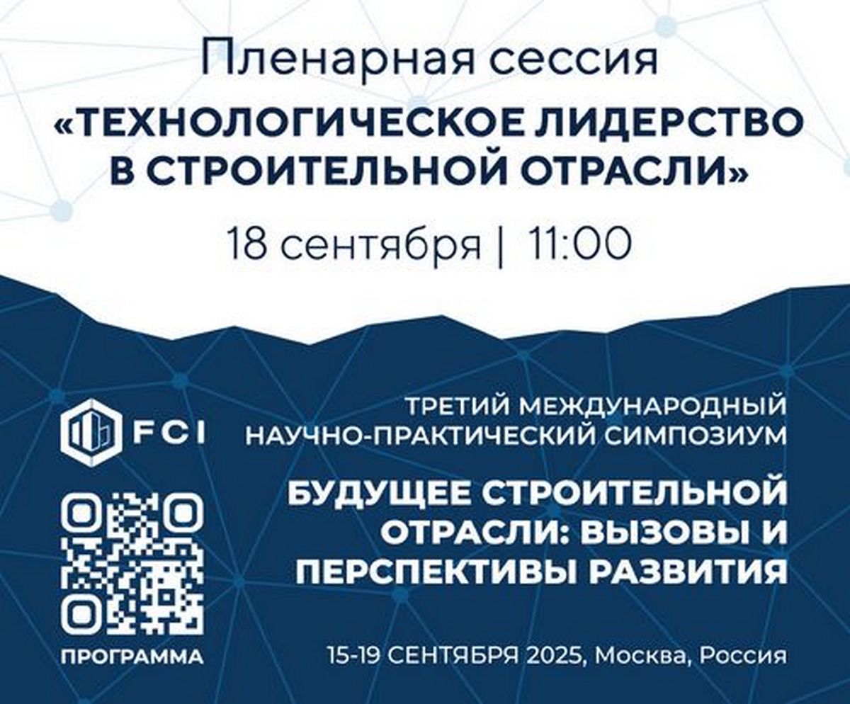 Москва. 12 сентября. НИУ МГСУ — Пленарная сессия «Технологическое лидерство в строительной отрасли» состоится в рамках Третьего Международного научно-практического симпозиума «Будущее строительной отрасли: вызовы и перспективы развития» в 11:00 18 сентября 2025 года в Актовом зале Дворца культуры НИУ МГСУ по адресу: г. Москва, Ярославское шоссе, д.26, к.1.