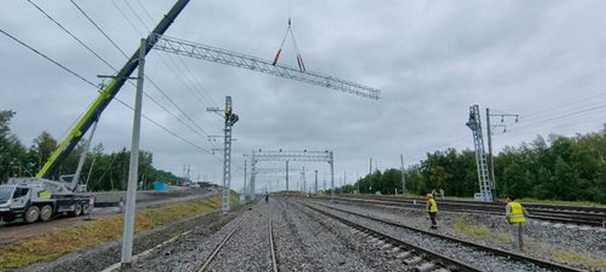 Для устройства земляного полотна под новые пути механизаторы отсыпали территорию площадью 29 гектаров, это 40 футбольных полей. Переработали более 500 тысяч кубометров грунта, перенесли многочисленные коммуникации: кабели связи, энергоснабжения. На пересечении с ручьями построили 1 мост и 3 водопропускные трубы.