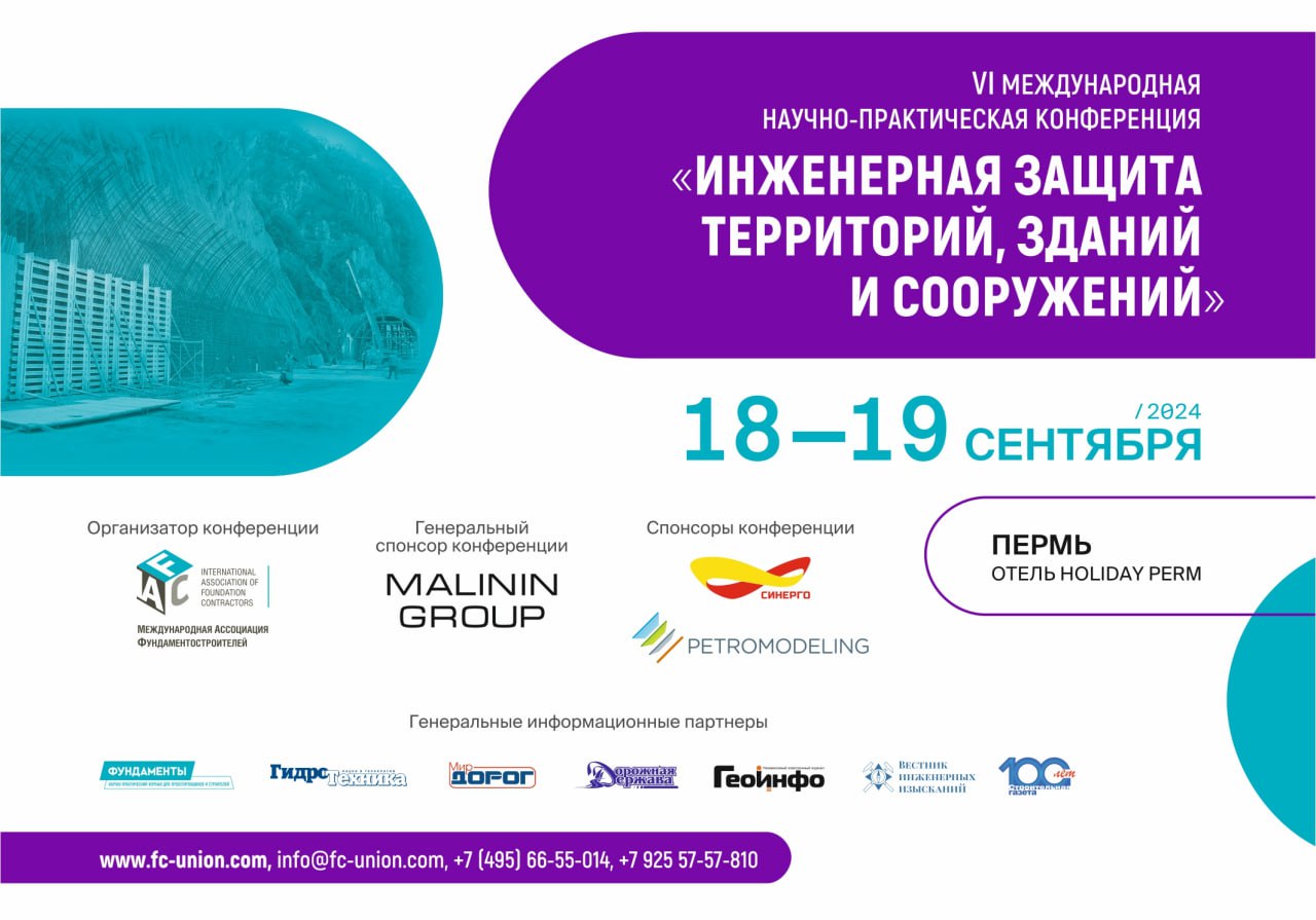 Организатором VI научно-практической конференции «Инженерная защита территорий, зданий и сооружений» выступает Международная Ассоциация Фундаментостроителей. Генеральный спонсор — группа компаний Malinin group. Также спонсорскую поддержку мероприятию оказывают ГК «ПЕТРОМОДЕЛИНГ» и ООО «СИНЕРГО».