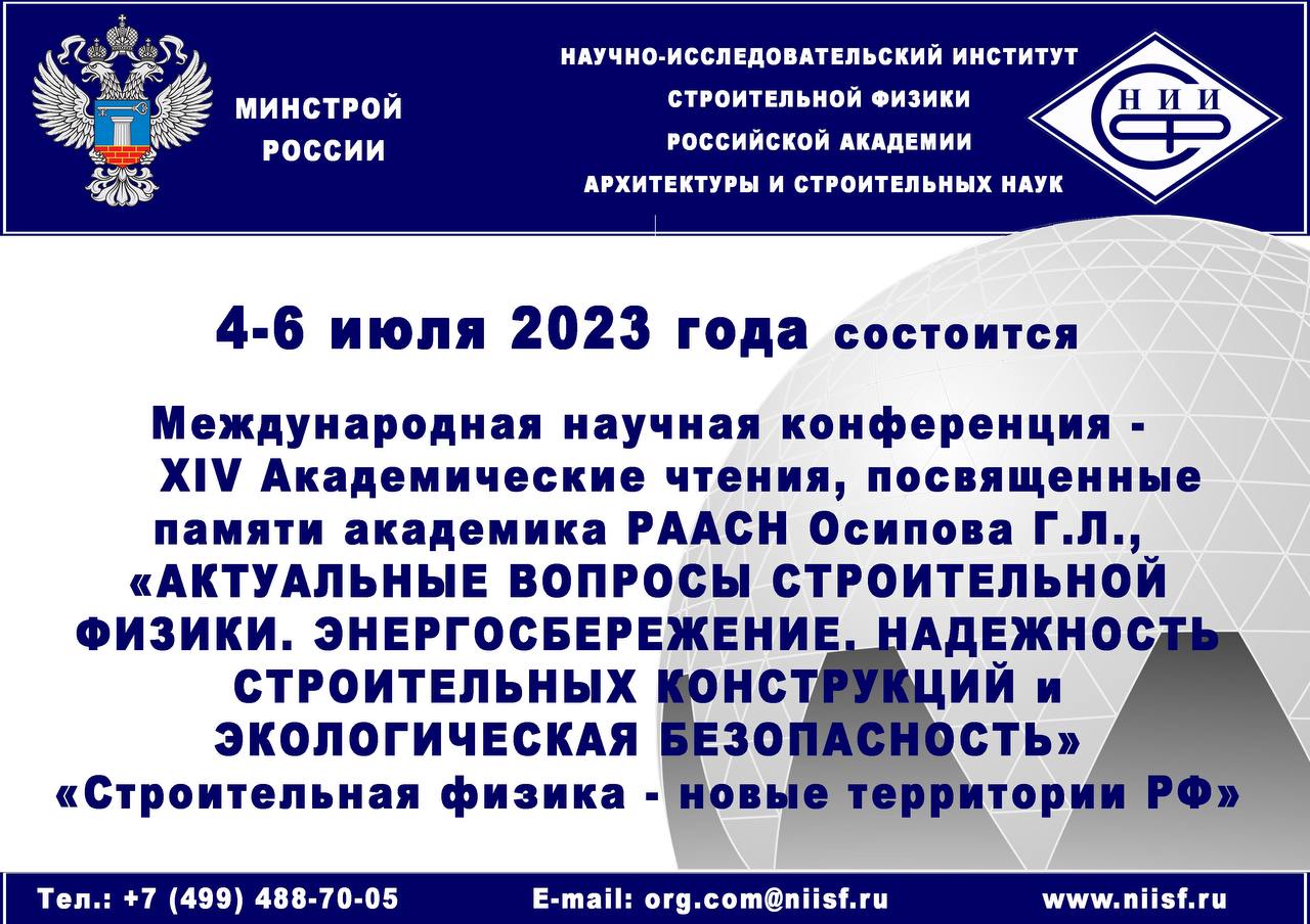 Москва. 29 июня. Минстрой — Ежегодно подведомственное Минстрою России ФГБУ «Научно-исследовательский институт строительной физики Российской академии архитектуры и строительных наук» (НИИСФ РААСН) проводит научную конференцию, посвященную памяти выдающегося ученого в области строительных наук, основоположника направления строительная физика в СССР и РФ, лауреата Государственной премии РФ, заслуженного деятеля науки и техники СССР, академика РААСН, профессора, доктора технических наук Осипова Георгия Львовича.