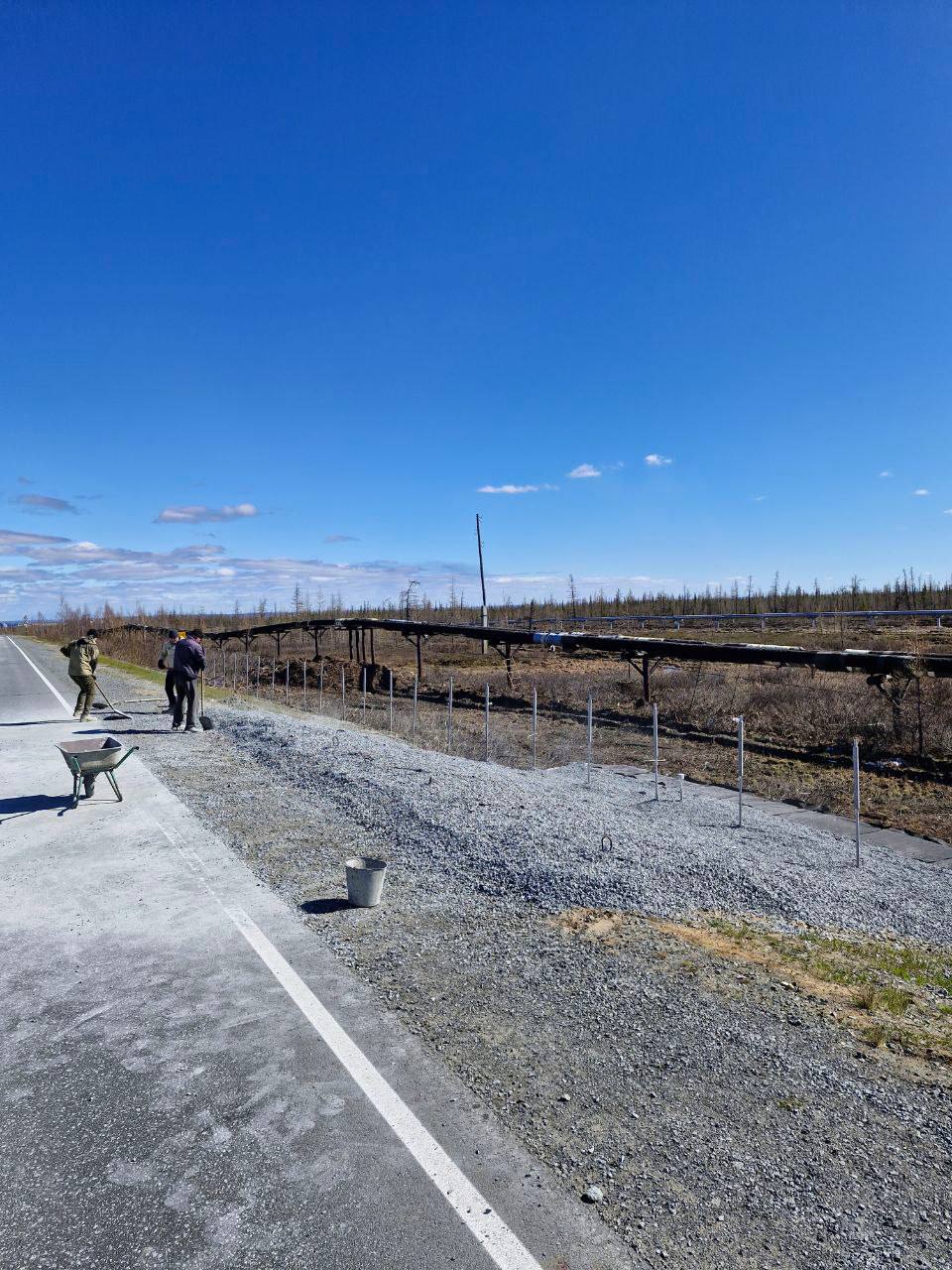 •Установка 54 термостабилизаторов и 5 термоскважин вдоль обочин и откосов дороги. Уже проведены первые температурные замеры грунтов дорожной насыпи и прилегающей территории.