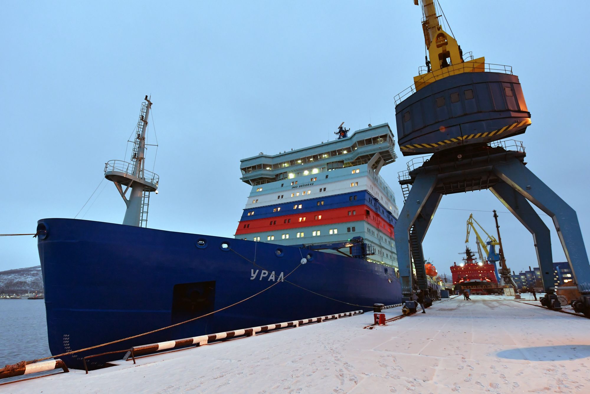 Москва. 17 января. Минстрой РФ – Новый универсальный атомный ледокол проекта 22220 «Урал» обеспечивает безопасные ледокольные проводки судов в акватории Северного морского пути. Строительство атомного ледокола осуществлялось ФГУП «Атомфлот» Госкорпорации «Росатом» в рамках государственной программы Российской Федерации «Развитие атомного энергопромышленного комплекса».