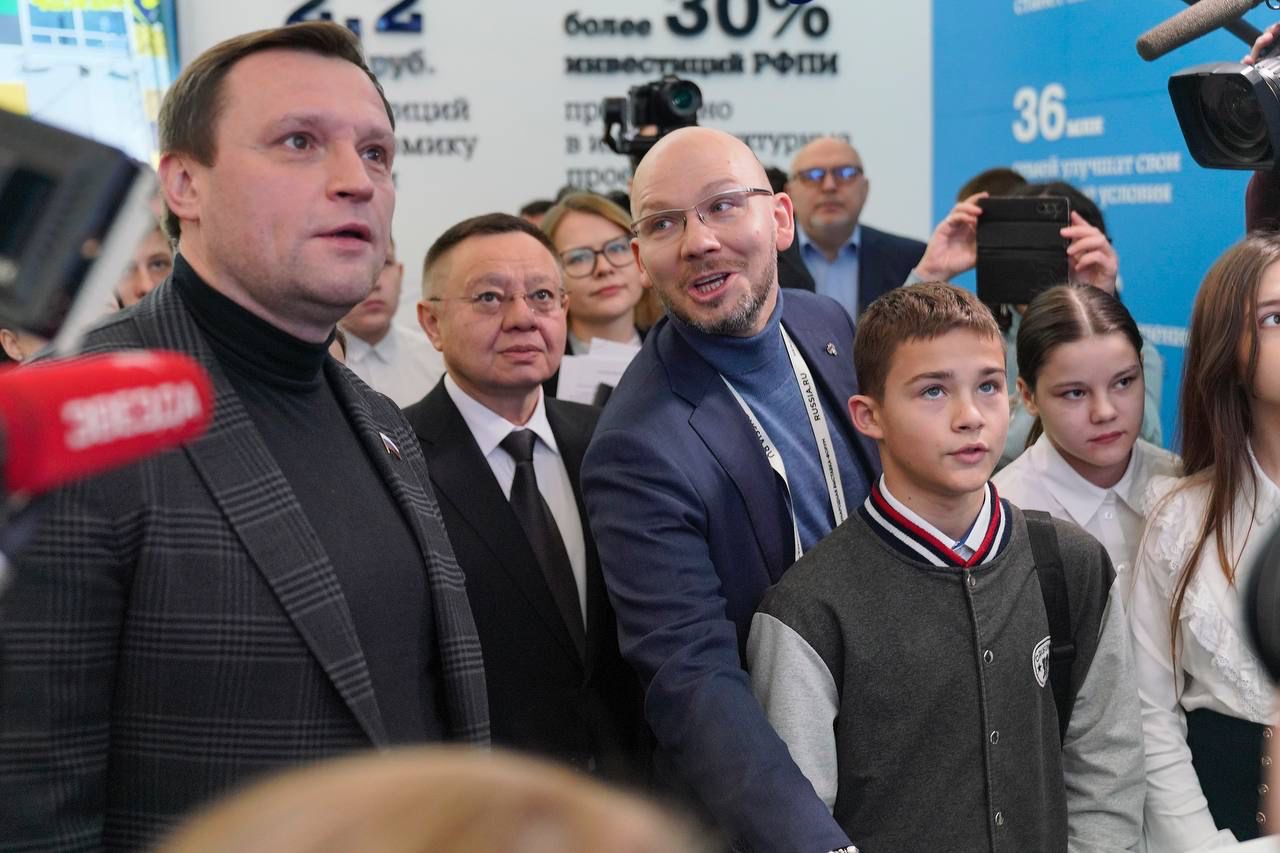 В рамках открытия павильона юным посетителям, которые приехали на выставку из новых субъектов Российской Федерации, представили стенды экспозиции «Строим будущее», глава Минстроя России рассказал ребятам историю ведомства и основные направления деятельности стройкомплекса , а также поделился результатами, которых достигла отрасль за последние годы.