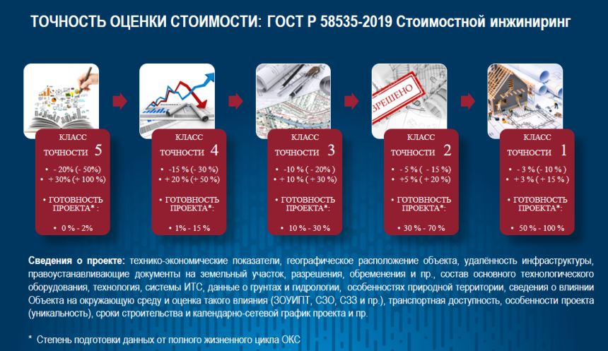 Примеры практических подходов к управлению рисками и оценке обоснования инвестиций инфраструктурных объектов прокомментировали в своих докладах Елена Мачуева, начальник отдела анализа эффективности капитальных вложений Инжинирингового центра Главгосэкспертизы России и ее заместитель Евгения Згонникова. Так, практический опыт показал, что ошибка на начальной стадии является максимальной и может составлять более 30 % в верхнем диапазоне. По мере дальнейшей проработки и готовности проекта точность оценки стоимости закономерно увеличивается, что свидетельствует о высокой эффективности стоимостного инжиниринга.