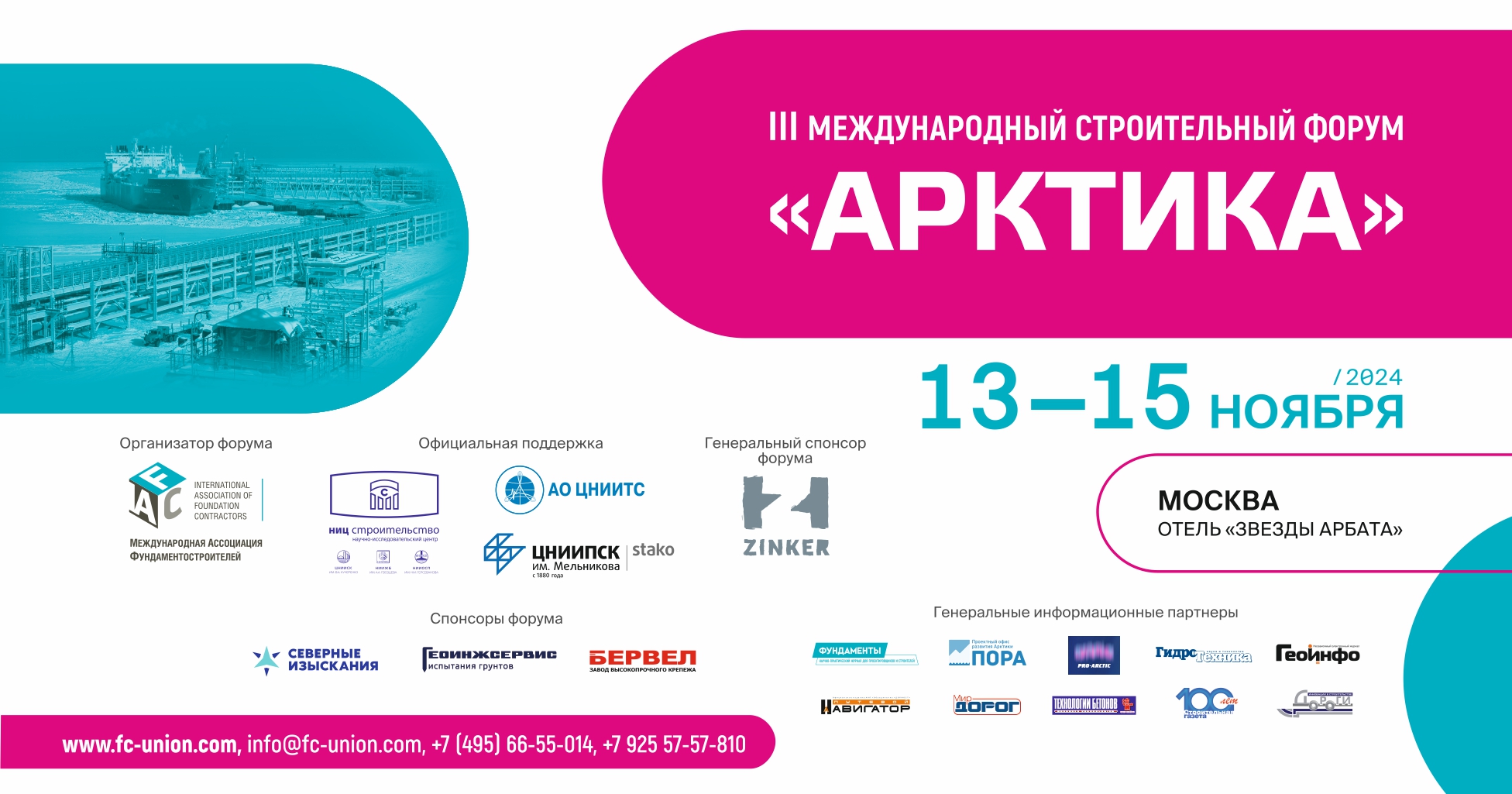 Генеральные информационные партнеры: журнал «ФУНДАМЕНТЫ», Проектный офис развития Арктики, информационно-аналитический портал PRO-ARCTIC, журнал «Гидротехника», журнал «ГеоИнфо», журнал «Путевой навигатор», журнал «Мир дорог», журнал «Технологии бетонов», Строительная газета, журнал «Автомобильные дороги».