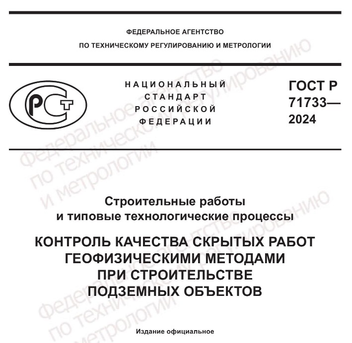 Москва. 19 декабря. НИЦ «Строительство» — ГОСТ Р 71733-2024 «Строительные работы и типовые технологические процессы. Контроль качества скрытых работ геофизическими методами при строительстве подземных объектов» утвержден приказом Росстандарта от 24 октября 2024 года № 1509-ст.