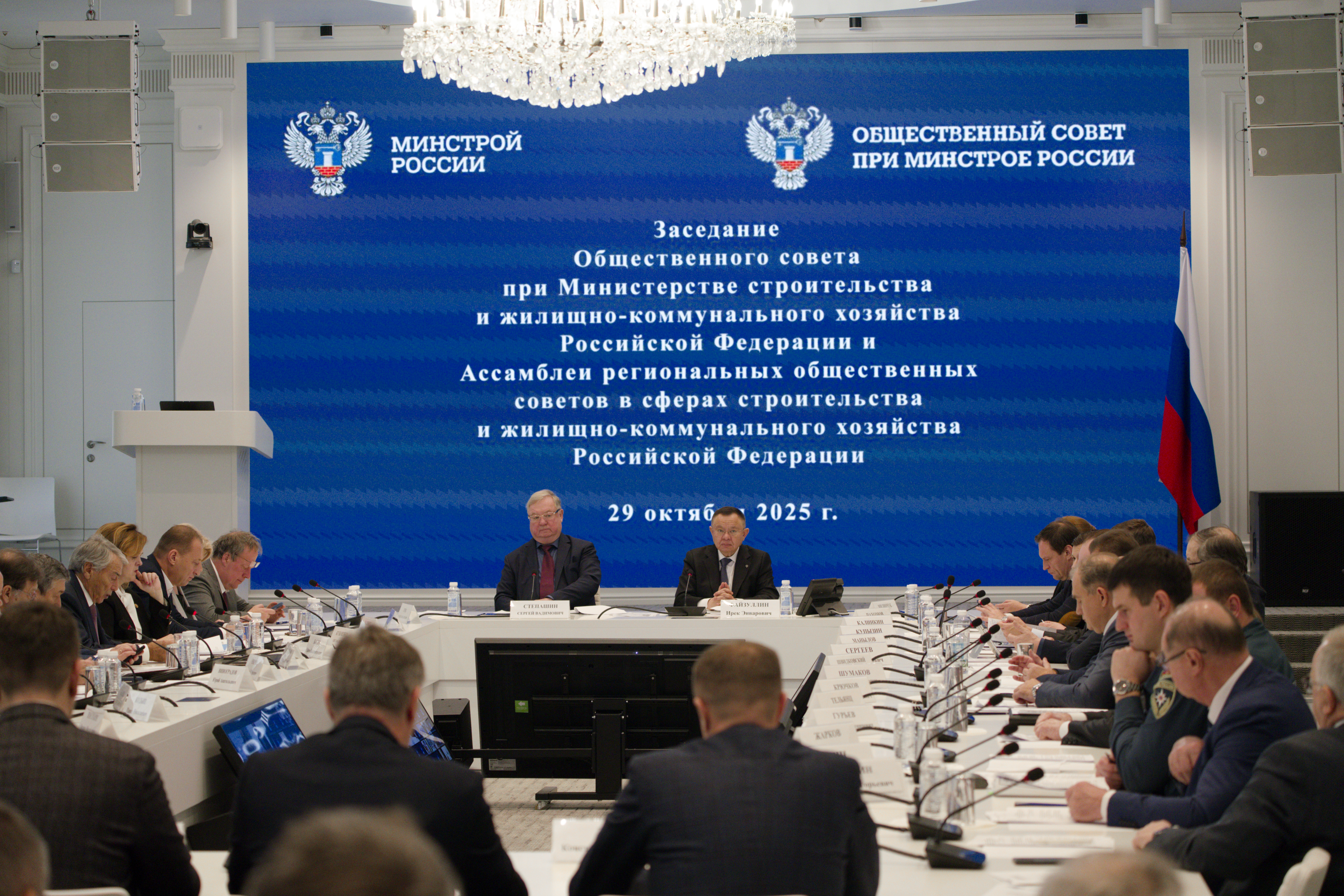 Москва. 30 октября. Минстрой РФ — В Минстрое России под сопредседательством Министра строительства и ЖКХ РФ Ирека Файзуллина и председателя Общественного совета при Минстрое России Сергея Степашина состоялось совместное заседание Общественного совета при Минстрое России и Ассамблеи региональных общественных советов в сферах строительства и ЖКХ. В работе заседания приняли участие аудитор Счетной палаты Наталья Трунова, заместитель секретаря Общественной палаты Владислав Гриб, помощник министра и ответственный секретарь общественного совета при Минстрое России Светлана Кузьменко, генеральный директор ППК «Фонд развития территорий» Василий Купызин, начальник Главгосэкспертизы Игорь Манылов, генеральный директор НИЦ «Строительство» Виталий Крючков, а также представители регионального научного и экспертного сообществ.