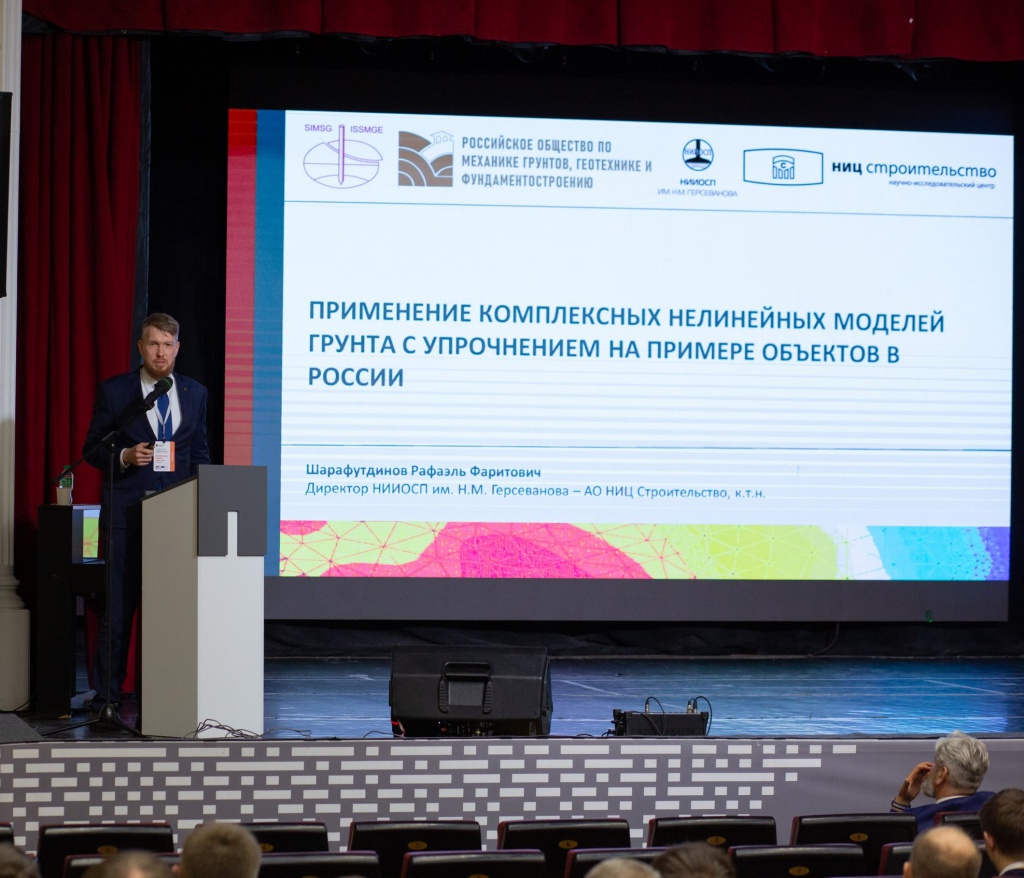 •Директор института Рафаэль Шарафутдинов рассказал о применении комплексных нелинейных моделей грунта с упрочнением на примере объектов в России, выступил с докладом «Прогноз осадок буронабивных одиночных свай с учетом упругопластического поведения грунта», а также стал сопредседателем секции «Особенности инженерных изысканий и определения физико-механических характеристик грунтов оснований фундаментов и подземных конструкций».