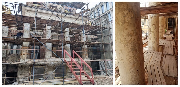 Лабораторией реконструкции уникальных каменных зданий и сооружений ЦНИИСК им. В.А. Кучеренко АО «НИЦ «Строительство» проведено обследование технического состояния конструкций портика здания.