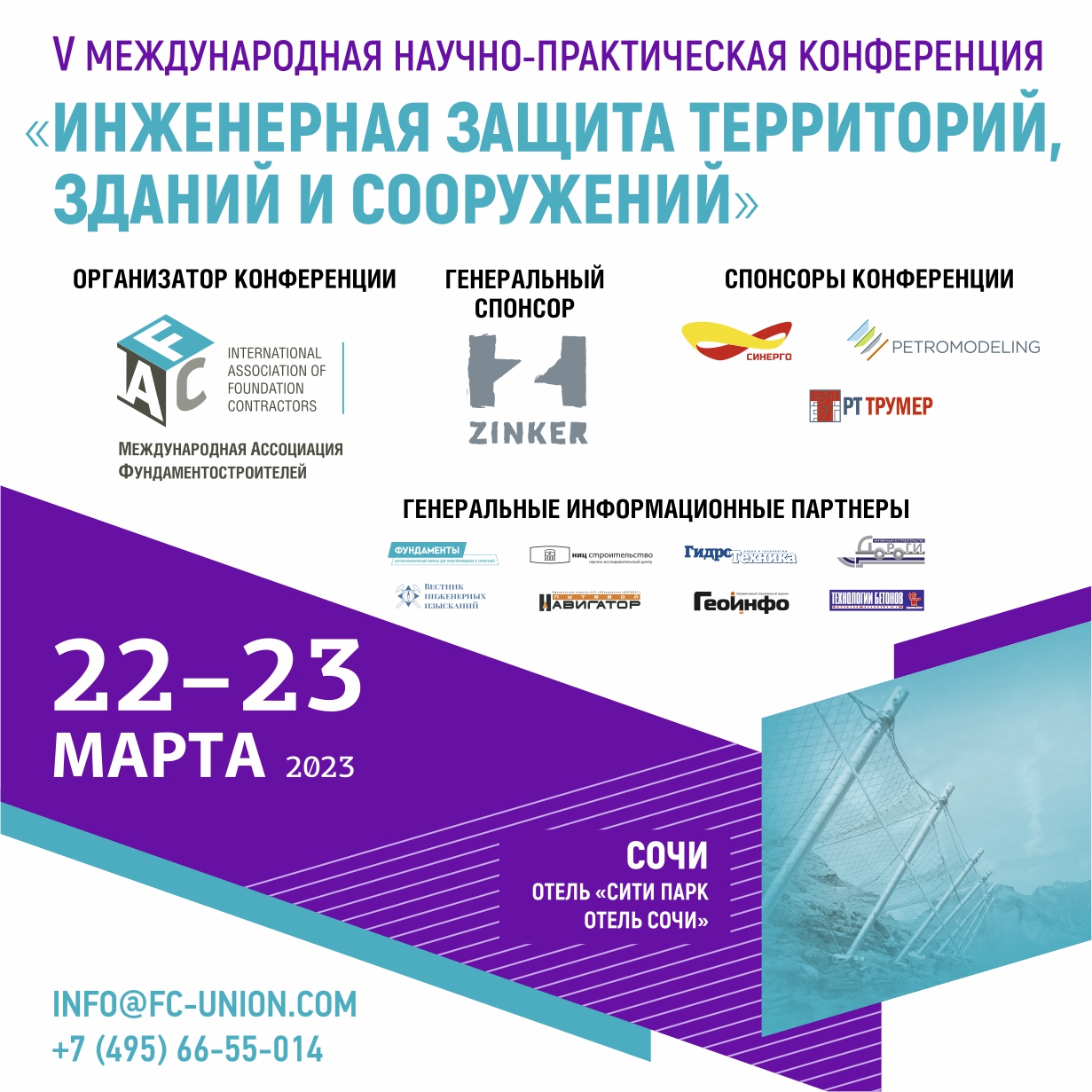 Москва. 13 февраля. МАФ – 22 и 23 марта 2023 года в Сочи в отеле «Сити Парк Отель Сочи» пройдет ежегодная международная научно-практическая конференция «Инженерная защита территорий, зданий и сооружений» и выставка «Строительные технологии для инженерной защиты».