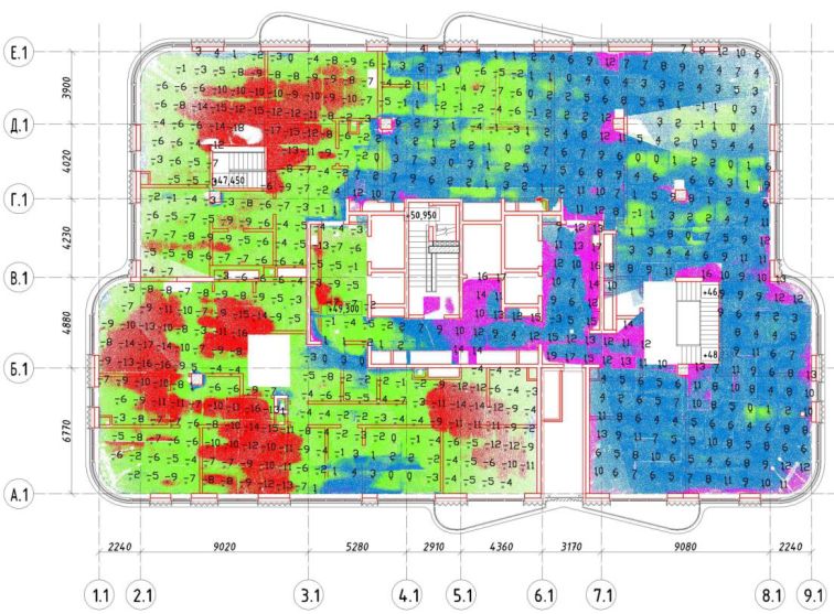 Основной результат работы приборов 3D-сканирования и фотограмметрии — это облака геопозиционированных точек, которые применяются для трехмерного моделирования объектов строительства. Эти облака содержат габаритные параметры конструкции, а также данные о смещениях, трещинах и других дефектах.
