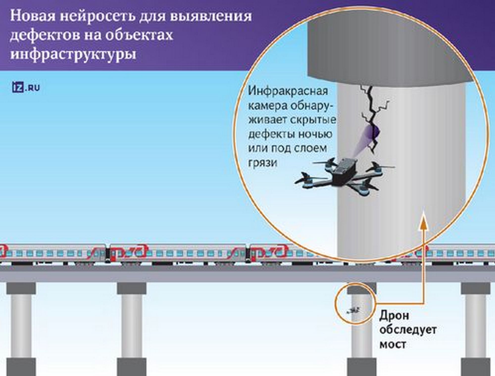 Для повышения точности выявления дефектов при анализе видеоизображения с дрона искусственный интеллект имитирует механизм фокусировки человеческого взгляда. При этом он будет использовать данные инфракрасного диапазона, которые позволяют ему увидеть разрушения, которые нельзя заметить на обычной картинке. Разработка уже показала точность 88,7% на реальных примерах из России и Китая. Сейчас контроль за состоянием важных объектов проводится вручную. Для осмотра одной постройки нужно как минимум три специалиста. По мнению экспертов, технология заметно облегчит труд человека, однако машина должна работать под контролем оператора.