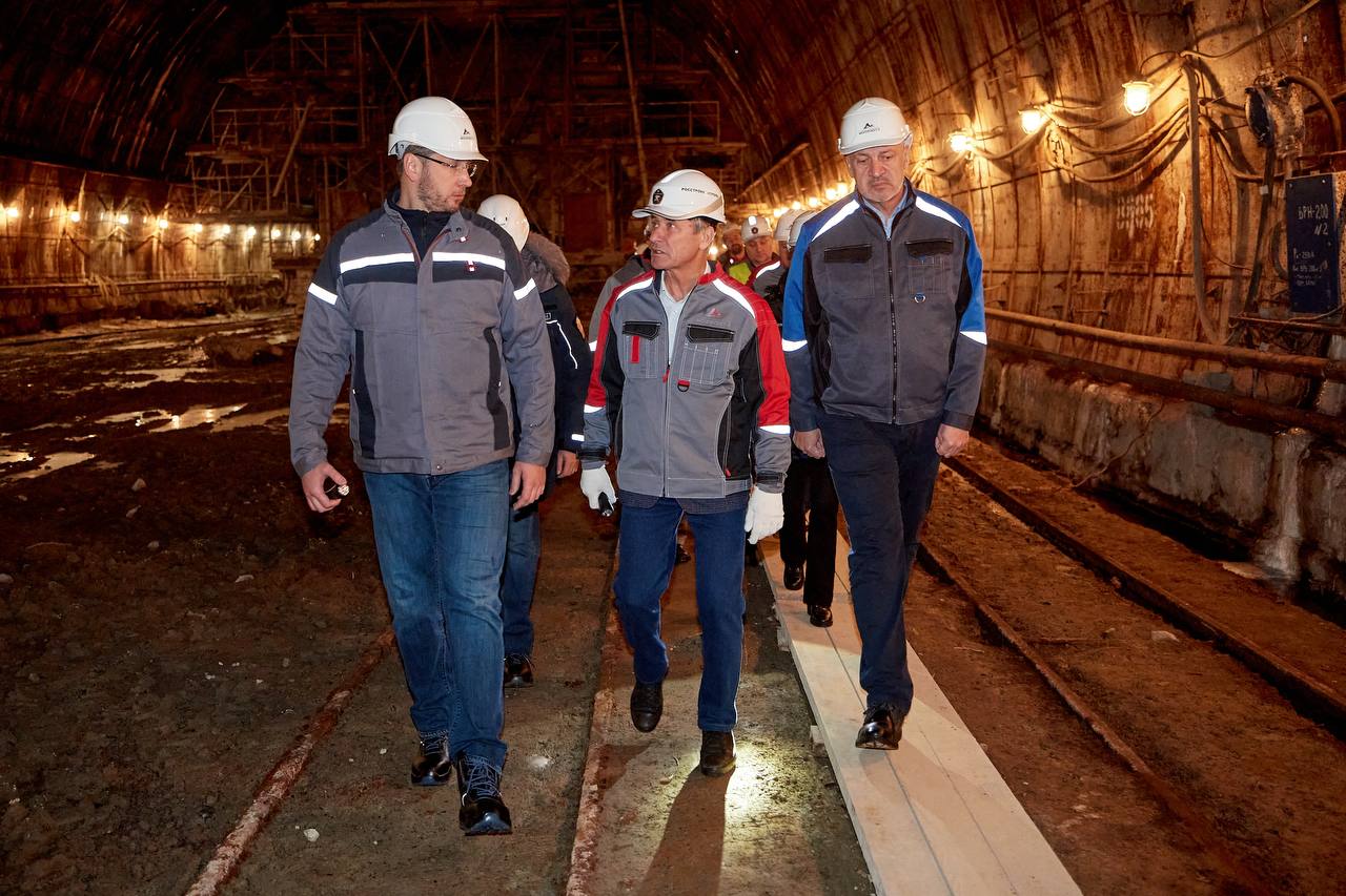 Перед совещанием Александр Ломакин и Анна Меркулова осмотрели текущее состояние станционных комплексов «Комсомольская площадь» и «Торговый центр», а также площадки будущего строительства новых станций метро.