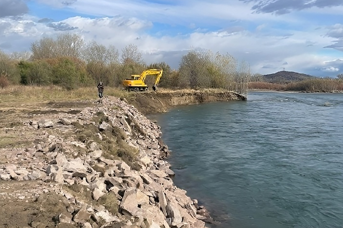 В Хакасии укрепили 300 метров береговой линии Южной дамбы на реке Абакан