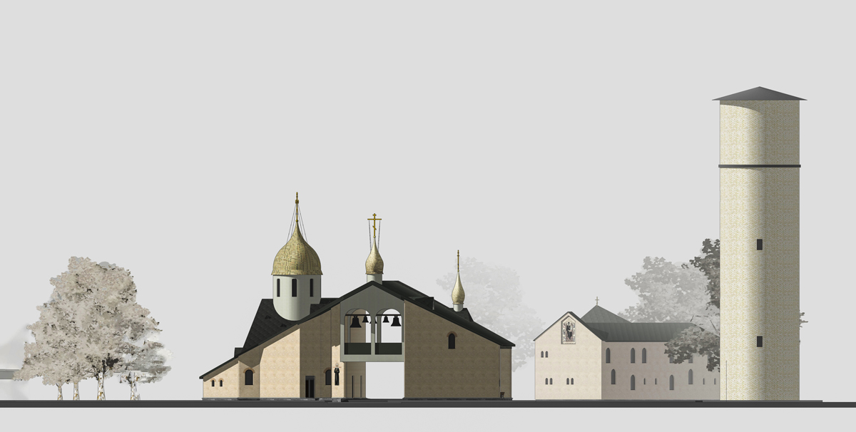 На соседнем с храмом участке еще в 1960-х годах была построена круглая кирпичная водонапорная башня. Сегодня башня не эксплуатируется, но при проектировании этот объект был использован как своего рода центральный модуль, вокруг которого создадут новую архитектурную среду.