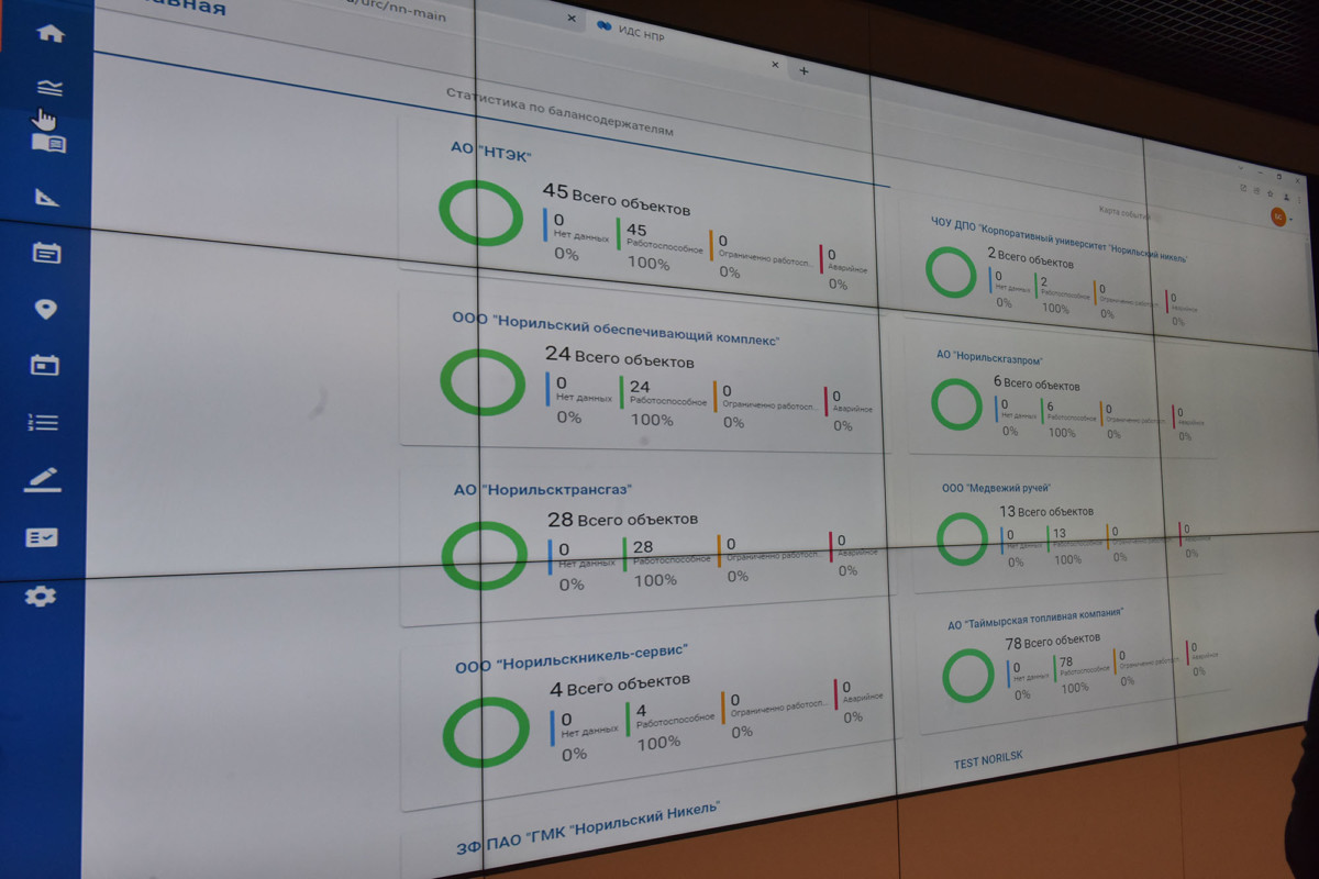 В первую очередь реализации проекта вошли все резервуарные парки компании, все емкости от одной тысячи кубометров – три нефтебазы Таймырской топливной компании (ТТК), хранилища аварийного запаса дизельного топлива НТЭК на всех ТЭЦ, резервуары «Норильсктрансгаза» и «Норильскгазпрома». Кроме того, в перечень наблюдаемых объектов вошли здания с большим количеством людей: административно-бытовые здания предприятий, управления, а также здания культурно-исторического наследия Норильска, например Дворец культуры.