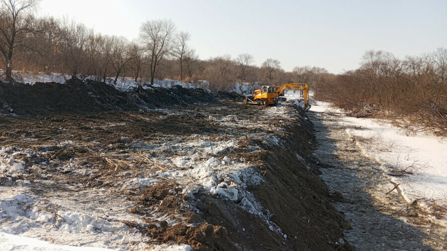 Приморье. 25 декабря. AmurLife — Первая техника Приморского министерства ГО и ЧС приступила к расчистке русел рек Спасовка и Кулешовка в Спасске-Дальнем. В ближайшее время также техника придет в Уссурийск, Покровку, Лесозаводск. Специалисты пользуются невысоким уровнем воды, чтобы прочистить узкие места.