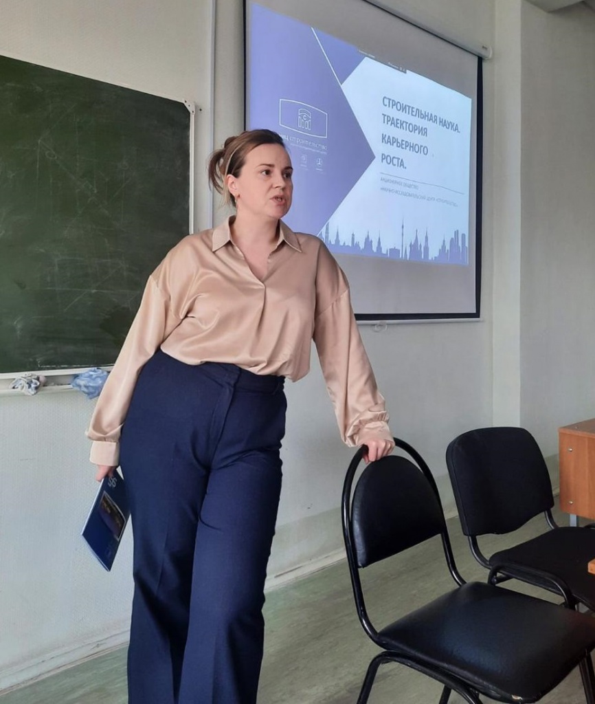 В ходе выступления спикер поделилась информацией, как студенты 3 курса, обучающиеся по специальности «Промышленное и гражданское строительство», могут построить успешную карьеру в области науки, в частности в НИЦ «Строительство». Была представлена организационная структура компании и обозначены основные направления ее деятельности.