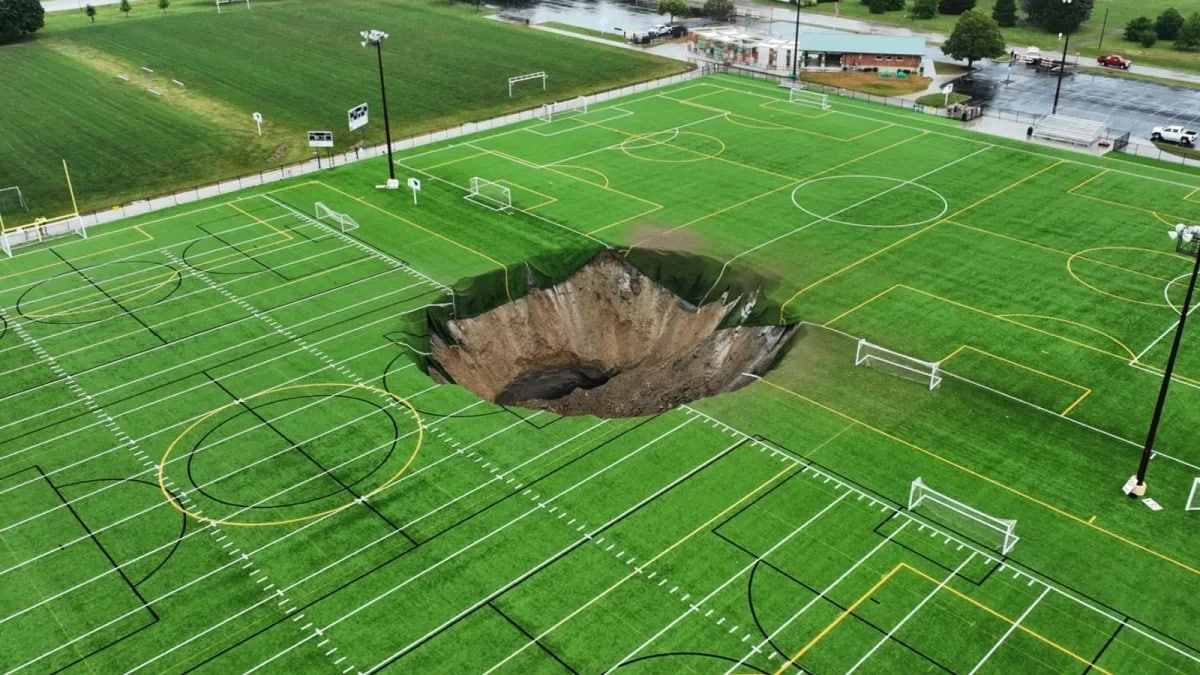 В США гигантская яма образовалась на футбольном поле