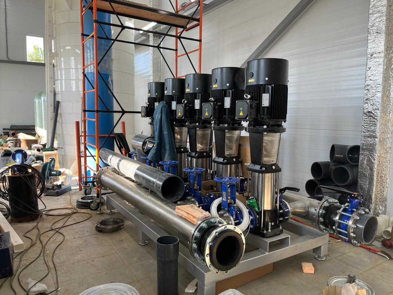 Проектом реконструкции водопроводной станции предусмотрено строительство станции водоподготовки, насосной станции второго подъема, резервуара чистой воды, ультрафиолетовое обеззараживание. На данный момент выполнено около 90% работ.