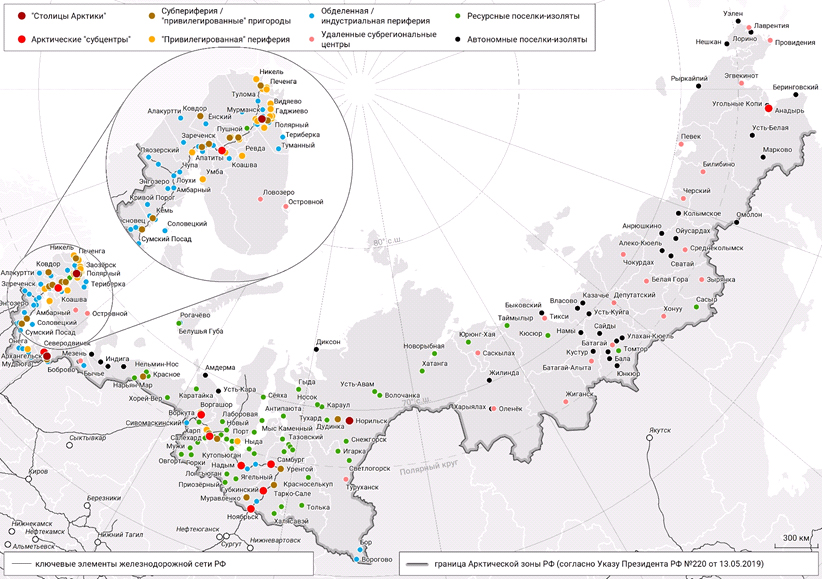 3. Населенные пункты субпериферии (Беломорск, Дудинка, Кандалакша, Ковдор, Мончегорск, Нарьян-Мар, Уренгой и др.);