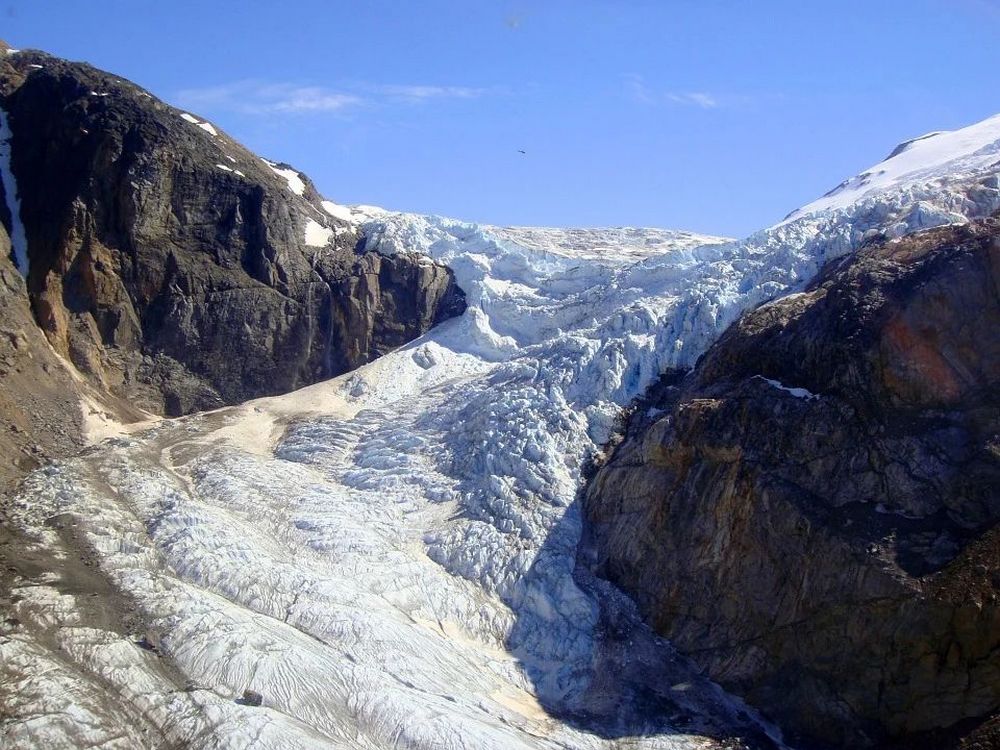 Отсутствие многолетней мерзлоты в надледниковой части задней стенки может увеличить поступление воды в подледниковые части этого скального склона по подземным дренажным путям (вдобавок к поверхностному стоку).
