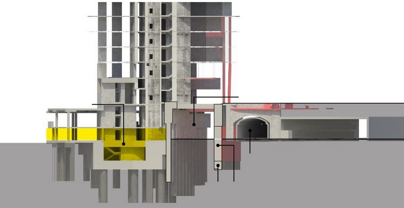 Детальный анализ смещений грунта в PLAXIS и проектирование в RAM Concept доказали, что строительство не нанесет ущерба окружающим зданиям, железнодорожным путям и историческому тоннелю метро, поэтому уполномоченные органы дали разрешение на строительство.