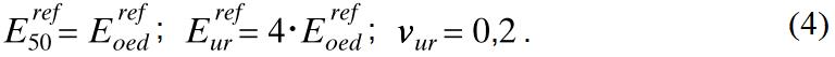 Поведение грунта моделировалось с использованием модели упрочняющегося грунта (HS) в программном комплексе PLAXIS. Для первичного нагружения при испытаниях в одометре это означает увеличение модуля деформации по следующей формуле: