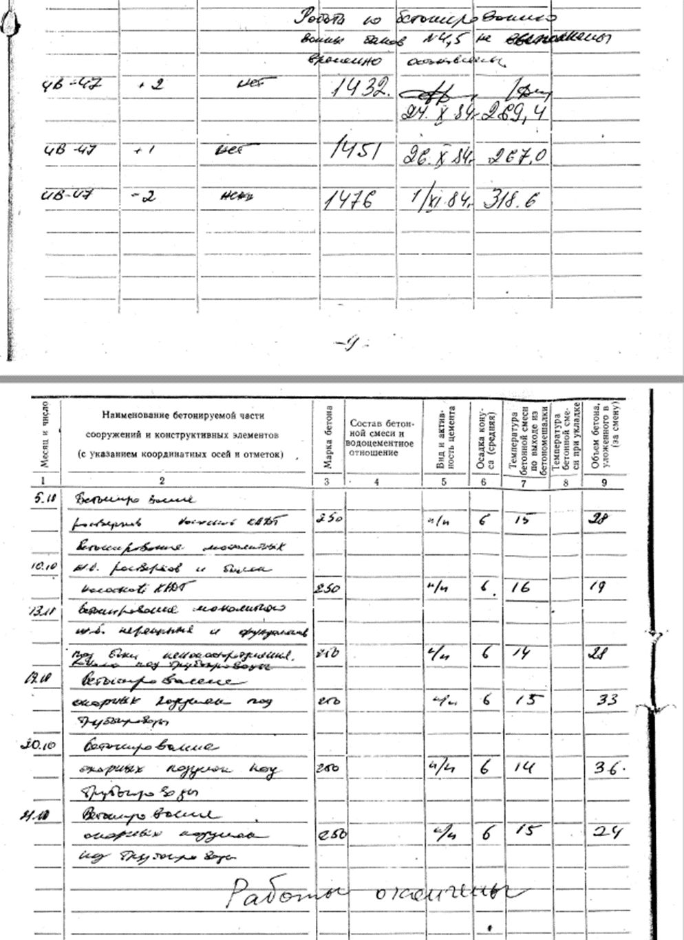 А вот вопросы к строителям и эксплуатационникам остаются – например, в журнале бетонных работ от 1984 г. есть такая запись: