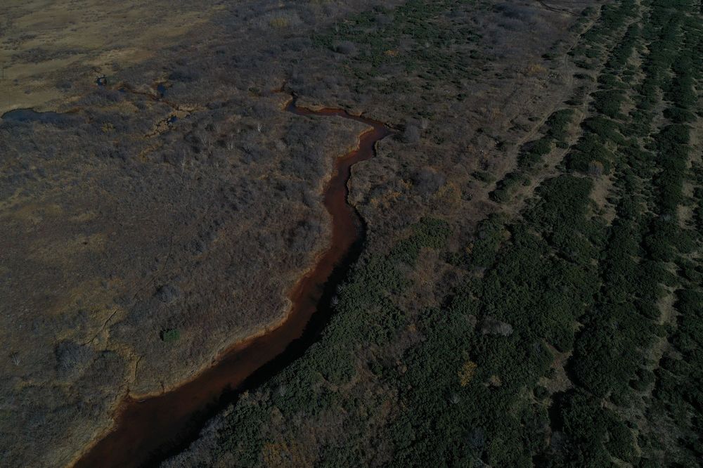 Рекогносцировочной фотосъемкой наших дронов были охвачены несколько десятков километров нижнего течения р. Налычева, руч. Ржавый, р. Мутнушка, руч. Козельский. Было обнаружено, что отсутствуют следы каких-либо воздействий на русловую сеть с территорий военных объектов: нет визуальных следов движения техники, донный грунт чистый, техногенных илов (т.е. специфических образований тонкого ила, которые присущи загрязненным объектам) нет, нет примесей и запахов, в реках встречается молодь лососевых. Это типичные камчатские горные реки. Козельское захоронение ядохимикатов также находится в стабильном состоянии, никаких возможных путей проникновения ядохимикатов на прилегающие территории и в водные объекты нет. Качество воды и отложений всех водотоков в пределах нормы, в р. Налычева присутствует молодь лососевых, органолептические свойства в норме, фоновые значения ph (от 7 до 8.5), электропроводности (от 5 до 80 мкСм/см), кислорода (во всех реках условия насыщения около 100 %), мутность воды в реках в пределах 5 мг/л.