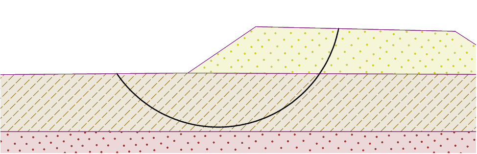 Приняв к расчету насыпи на двухслойном основании, представленном сверху грунтом ИГЭ6б, а снизу грунтом ИГЭ3 (рис. 1), соответствующие характеристики плотности (удельного веса), трения и сцепления, а также модуля деформации, проектировщик-расчетчик выполняет расчеты устойчивости и осадки.